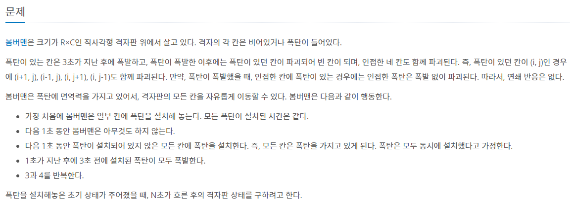 2초 -> 나머지 빈 공간에 폭탄설치(봄버맨이 설치한 폭탄 1초, 빈 공간 폭탄 3초)