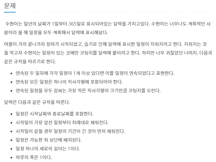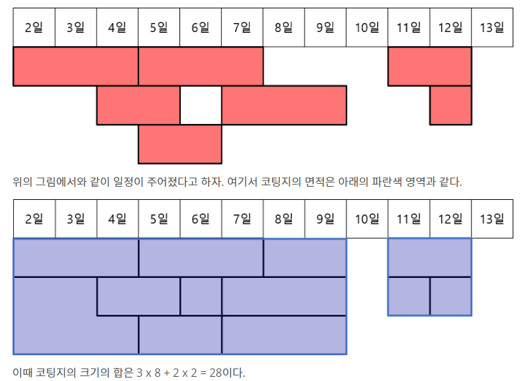 2번은 일정이 없다면 직사각형이 종료되는 시점이다. 그 전까지의 값을 구해주면 된다.