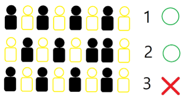 1번과 3번의 좌석이 똑같으므로 같은 기차로 포함된다. 즉, 3번은 통과하지 못한다.