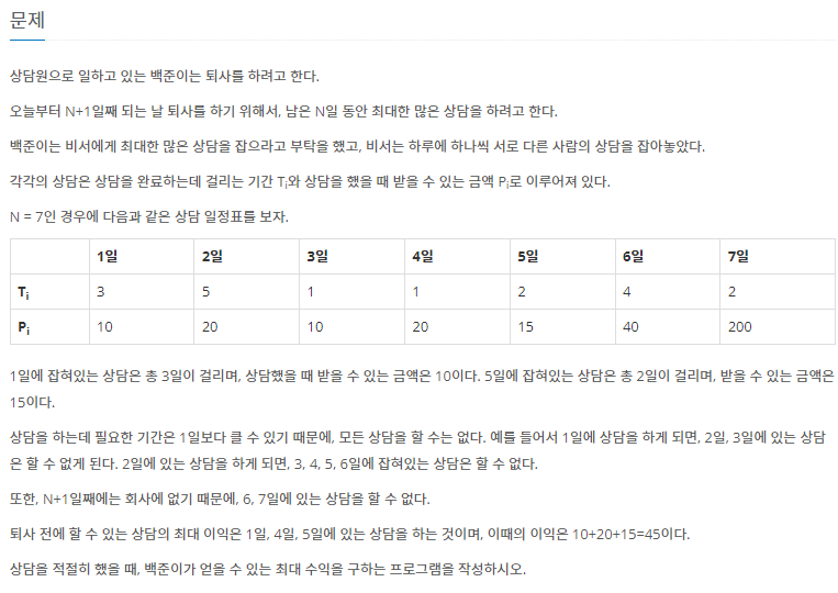 - 백준 퇴사