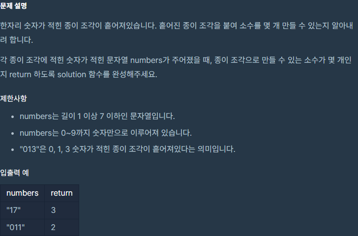 주어진 숫자를 사용해서 소수를 만드는 것이다.